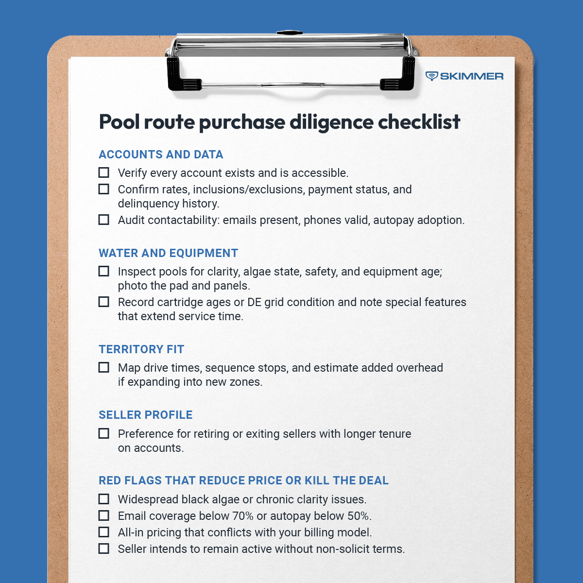 7. Quick reference checklist for pool route buyers