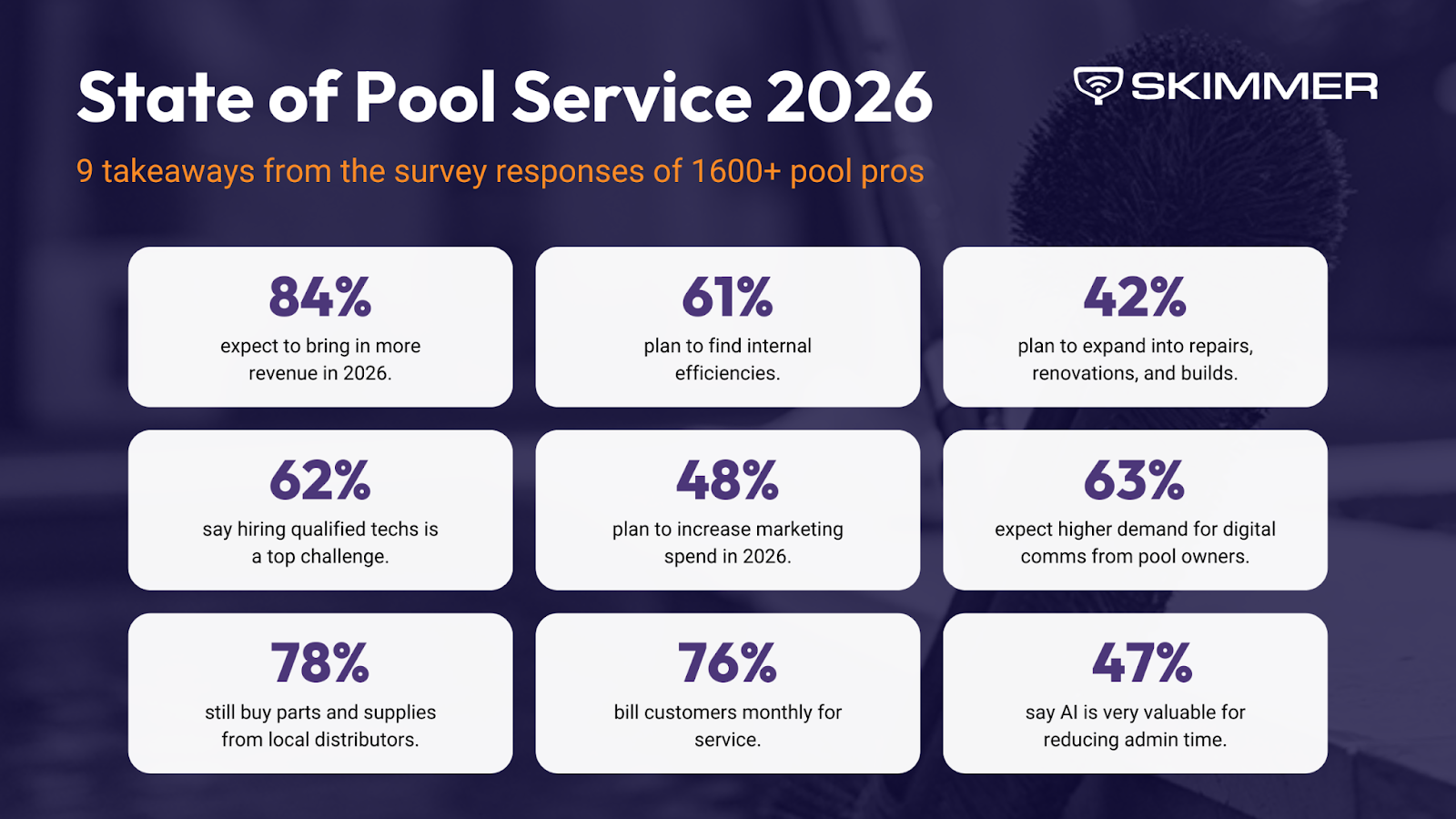 Austin, TX — Skimmer, the leading software platform for pool service businesses, today released its 2026 State of Pool Service Report, an in-depth look at how pool service companies across the U.S. are pricing, staffing, marketing, and operating amid rising customer expectations and ongoing economic pressure.