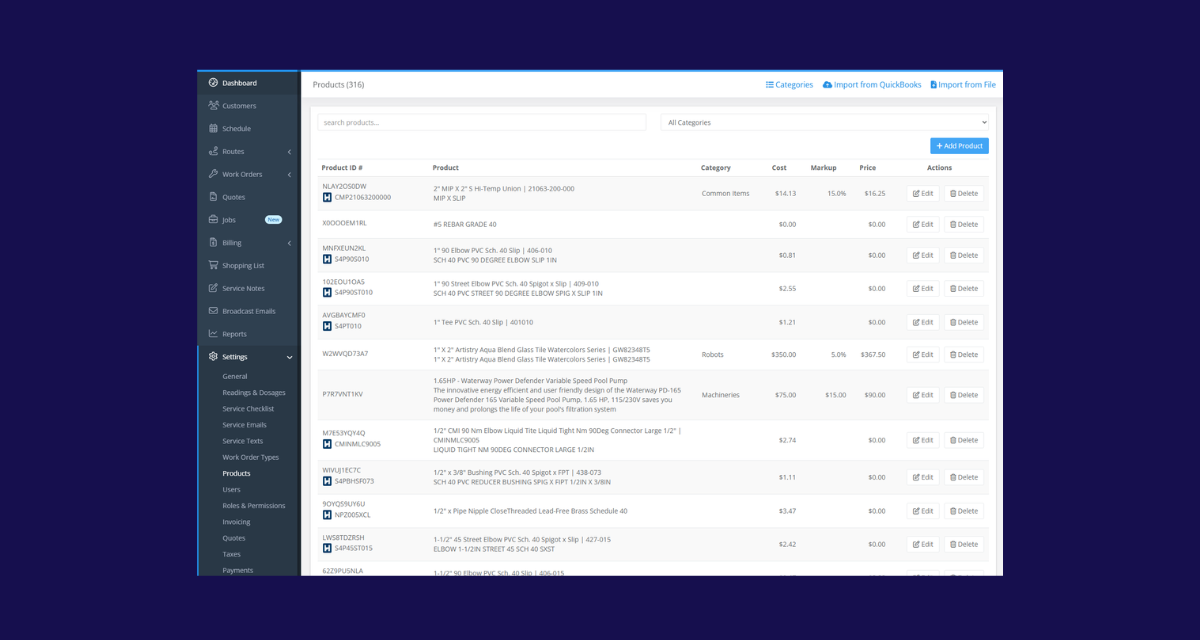 Keeping product costs accurate is one of those tasks that's easy to let slip, and when costs drift, so do your margins. The new Heritage Pool Supply integration helps fix that. Connect your Heritage account, and your most-purchased products sync nightly into Skimmer, pulling in current names, descriptions, and costs from your selected branch. When Heritage prices change, your data updates automatically, so you're always quoting and invoicing with accurate numbers.