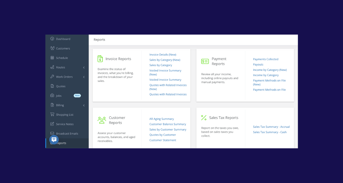 Five reports have been upgraded with a cleaner design, better export options, and improved filtering: Sales by Category, Income by Category, Voided Invoice Summary, Quotes with Related Invoices, and Payment Methods on File. No functionality has been removed, just a more modern experience with more ways to work with your data. Legacy versions of these reports will be removed on March 19, 2026.