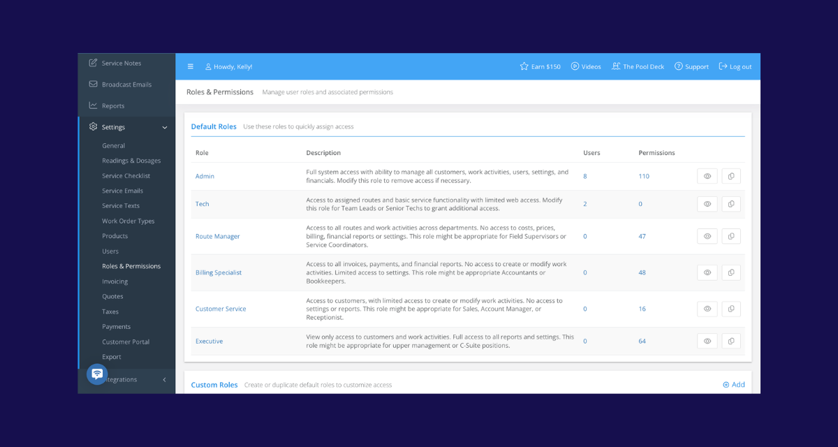 As operations scale, not everyone needs access to everything. Advanced roles and permissions give business owners more control over who can view and manage specific parts of Skimmer. This makes it easier to support larger office and field teams while keeping responsibilities clear and reducing risk.